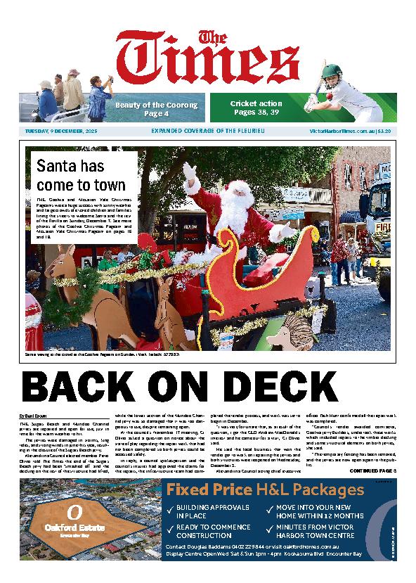 The Victor Harbor Times – 9th December 2025 Subscribe or Login to see the rest of the content. Username Password * Remember Me Forgot Password News Summer fun in the sand 17/12/2025 Encounter Bay bowling action 17/12/2025 Fleurieu’s year 12 results released, ATAR scores revealed 17/12/2025 Year 12s across the Fleurieu Peninsula were glued to their computer and phone screens at 8.30am on Monday, December 15, eagerly awaiting the release...