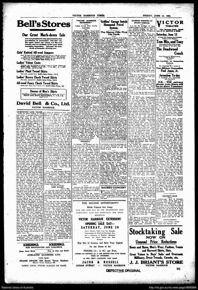News What happened 12/6, 1925? 17/06/2025 FacebookTwitterEmail Page three of the Times, June 12, 1925 edition. (Trove) Jack Church Here we are again for another week of Turn Back Times, this time turning our attention to the June 12, […] Subscribe or Login to see the rest of the content. Username Password * Remember Me Forgot Password