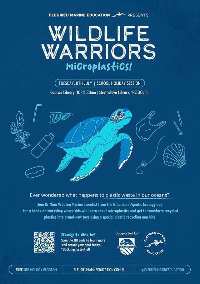 News be a wildlife warrior this July 21/06/2025 FacebookTwitterEmail Be a wildlife warrior at Fleurieu Marine Education's microplastics presentation this school holidays. (Supplied) Jack Church In partnership with the Alexandrina Council, Fleurieu Marine Education is presenting Microplastics with Dr Nina Wooton, a Marine scientist from […] Subscribe or Login to see the rest of the content. Username Password * Remember Me Forgot Password