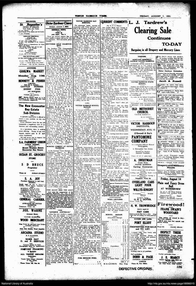 News What happened 7/8, 1925? 12/08/2025 FacebookTwitterEmail Page two of the Times, August 7, 1925 edition. (Trove) Jack Church Here we are again for another week of Turn Back Times, this time turning our attention to the August 7, […] Subscribe or Login to see the rest of the content. Username Password * Remember Me Forgot Password