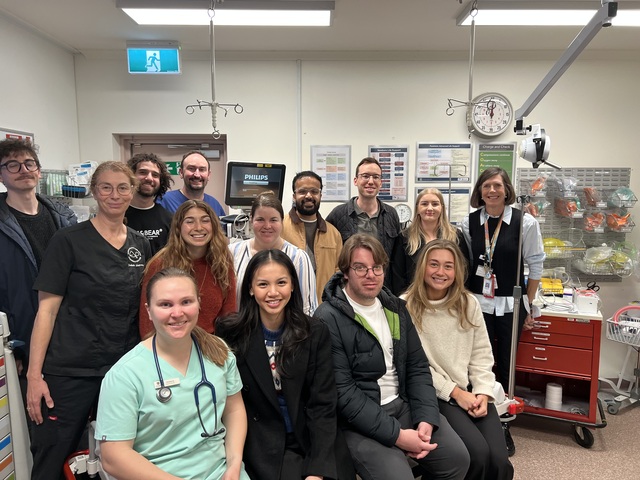 Back: Kyle, Ali (students), Intern Dr John Brennan, (students) Farhan, Andrew, Tegan, Clinical Nurse Sarah Dawson. Middle: Consultant Dr Deliah Mahne, (students) Alice, Lucy. Front: Fourth-year medical student Victoria, May, Kenan, Georgia.