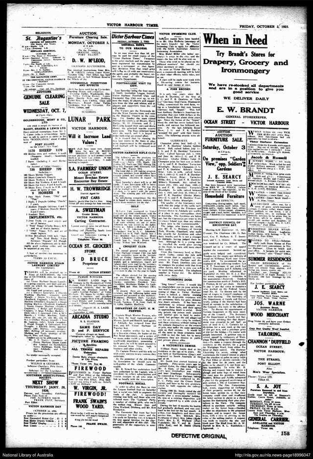 News In the paper 100 years later 07/10/2025 FacebookTwitterEmail Page two of the Times, October 2, 1925 edition. (Trove) Jack Church Here we are again for another week of Turn Back Times, this time turning our attention to the October 2, […] Subscribe or Login to see the rest of the content. Username Password * Remember Me Forgot Password