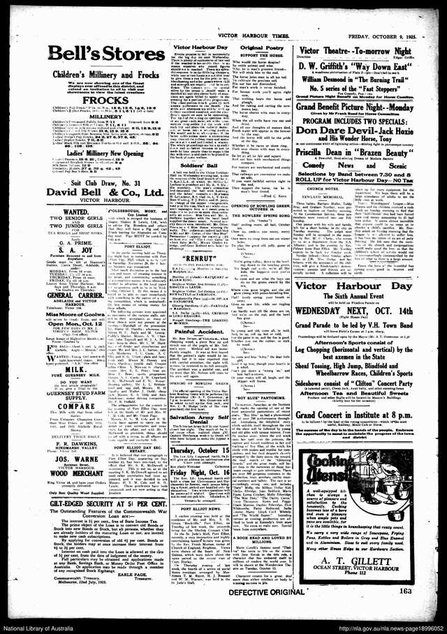 News In the paper 100 years later 14/10/2025 FacebookTwitterEmail Page three of the Times, October 9, 1925 edition. (Trove) Jack Church Here we are again for another week of Turn Back Times, this time turning our attention to the October 9, […] Subscribe or Login to see the rest of the content. Username Password * Remember Me Forgot Password