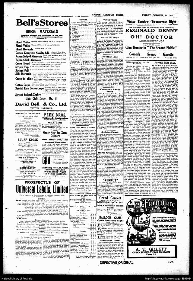 News The paper 100 years ago 04/11/2025 FacebookTwitterEmail Page three of the Times, October 30, 1925 edition. (Trove) Jack Church Here we are again for another week of Turn Back Times, this time turning our attention to the October 30, […] Subscribe or Login to see the rest of the content. Username Password * Remember Me Forgot Password