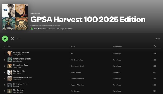 News Barnesy tops Harvest 100 12/11/2025 FacebookTwitterEmail The GPSA has released a playlist of songs selected by grain producers for grain producers ahead of this year's harvest. (Credit: Spotfiy) Jacinta Round South Australia’s own Jimmy Barnes has taken out top spot on Grain Producers SA’s (GPSA) Harvest 100, a playlist of […] Subscribe or Login to see the rest of the content. Username Password * Remember Me Forgot Password