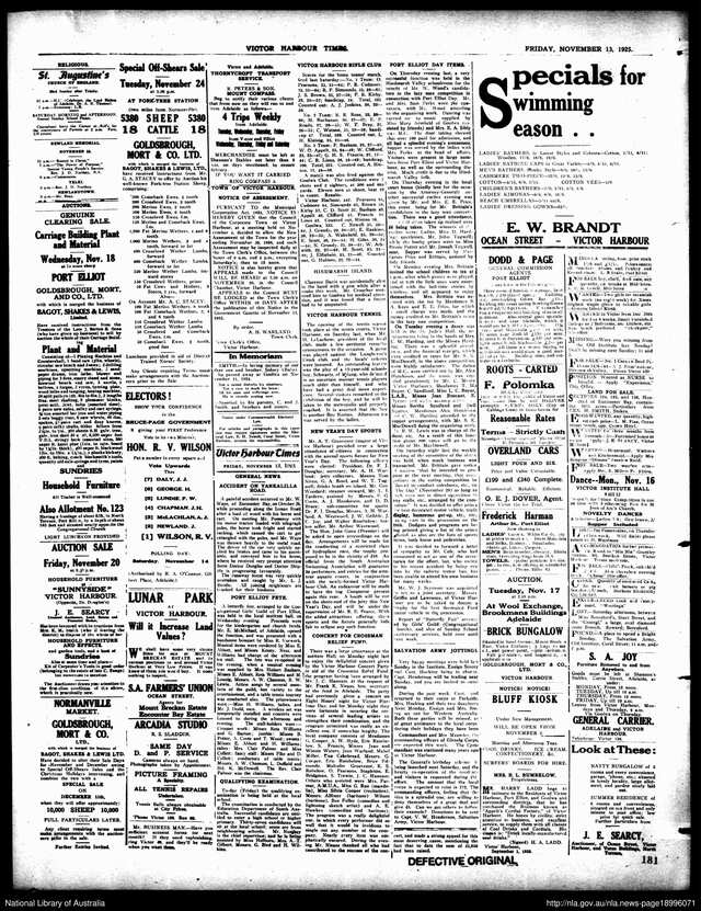 News What happened 13/11, 1925? 18/11/2025 FacebookTwitterEmail Page two of the Times, November 13, 1925 edition. (Trove) Jack Church Here we are again for another week of Turn Back Times, this time turning our attention to the November 13, […] Subscribe or Login to see the rest of the content. Username Password * Remember Me Forgot Password