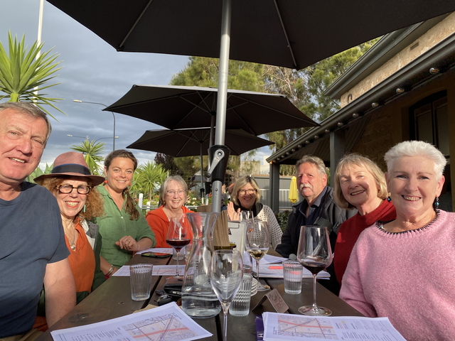 Mark Williams, Karen Lever, George Wood, Stephanie Walters, Jenny Esots, Jani Esots, Tracey Atkinson, and Dee McMillan-Hall at a meeting for the Aldinga Aquatic Centre. (Anne Cross)
