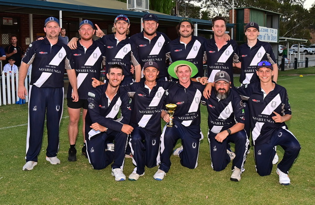 The Noarlunga boys are happy with their T20 victory - Back: Michael Ledgard, Jamie Diener, Jett Holberton, Ben Pye, Jacob Banks, Sean Williams, Jonathon Bowsfield. Front: Cameron Bullard, Travis Bronstien, Mason Parry, Matthew Spaan, Fletcher Harding.