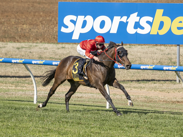 'Mercury Eight' ridden by Jacob Opperman and trained by Bill Bogarts won the Taylors Wines Benchmark 56 Handicap at Balaklava on November 12. (Photo by Terry Hann/Atkins Photography)